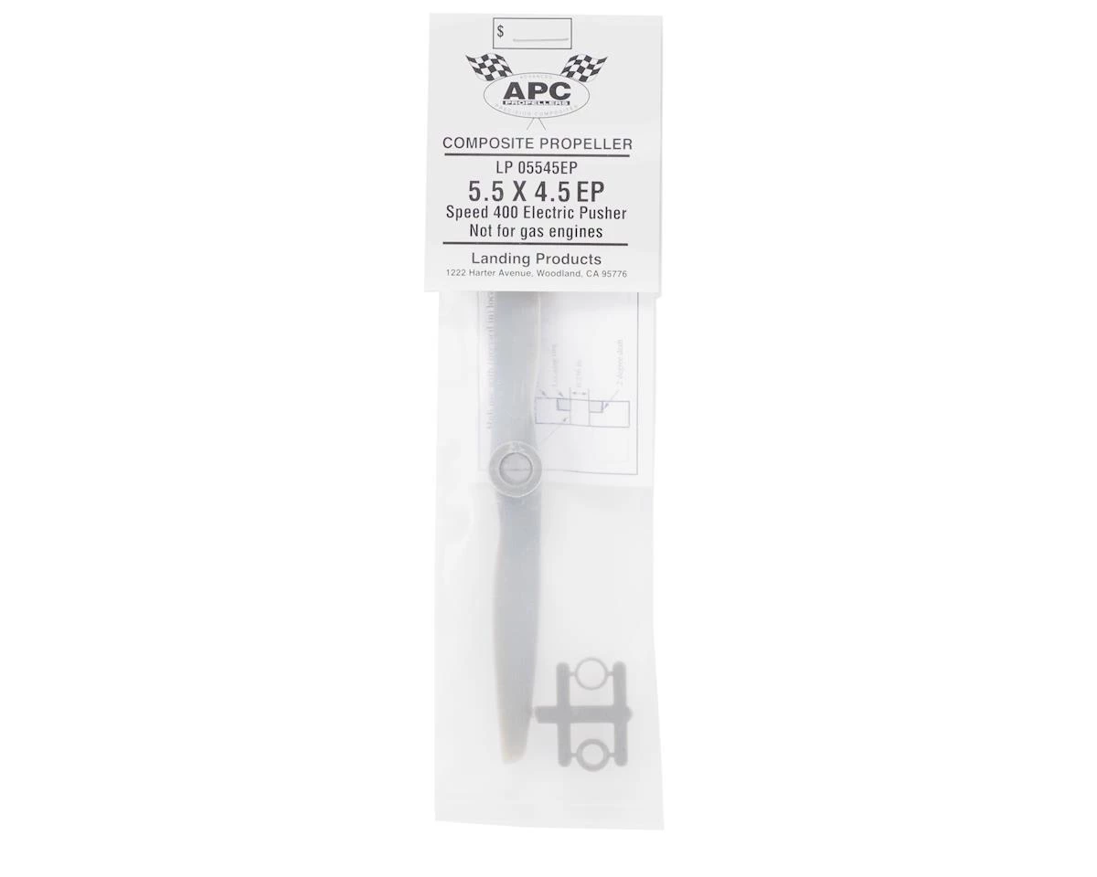This is a 5.5×4.5E Speed 400 pusher propeller from APC.
