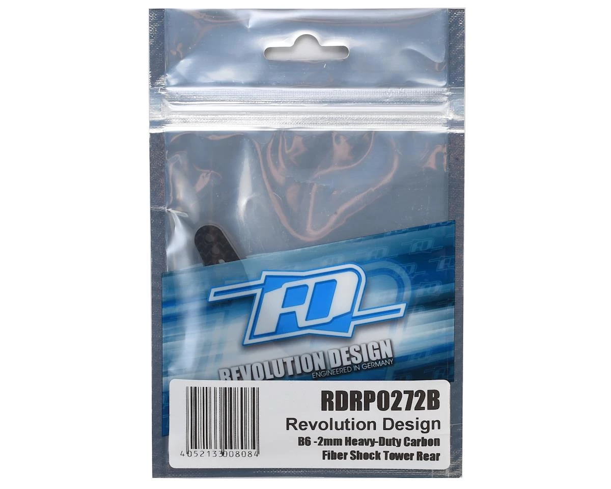 This is an optional RDRP -2mm Carbon Fiber B6 Heavy-Duty Rear Shock Tower. The RDRP -2mm Heavy Duty Carbon Fibre Rear Shock Tower was designed for B6 buggies running the AE ASC91704 2mm gearbox shim set. It features an updated geometry with the upper shock mounting positions being 2mm lower compared to the standard geometry to bring the overall geometry and up travel back to where it belongs. In addition, the reinforced heavy duty design improves durability and stability, greatly reducing breaking issues and increasing suspension efficiency.