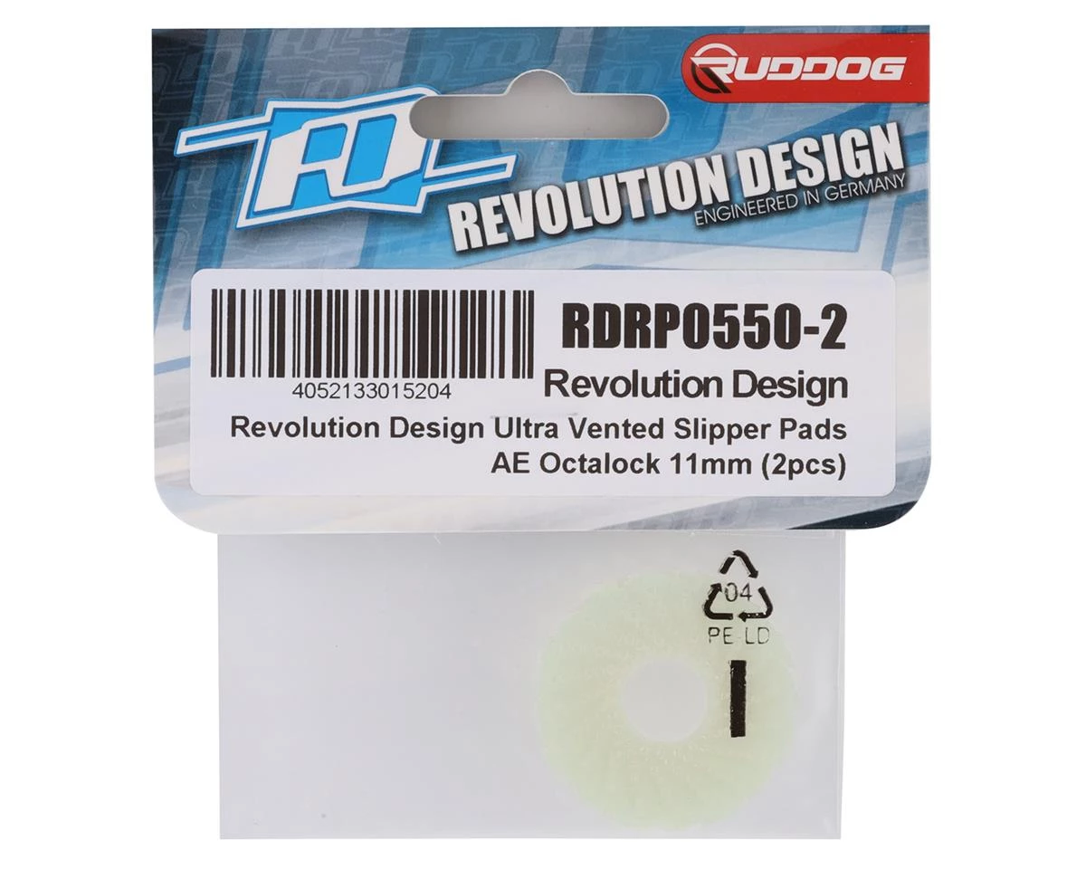 Revolution Design Associated Octalock 11mm Ultra Vented Slipper Pads are made of high-quality fibreglass and offer precise slipper action adjustment with exceptional durability. In addition the slipper stays more consistent over the whole run for less performance fading and more confidence in modified racing. The plates come in a set of two and they are compatible with Team Associated kits that use the 11mm Octalock dual disc slipper system.
