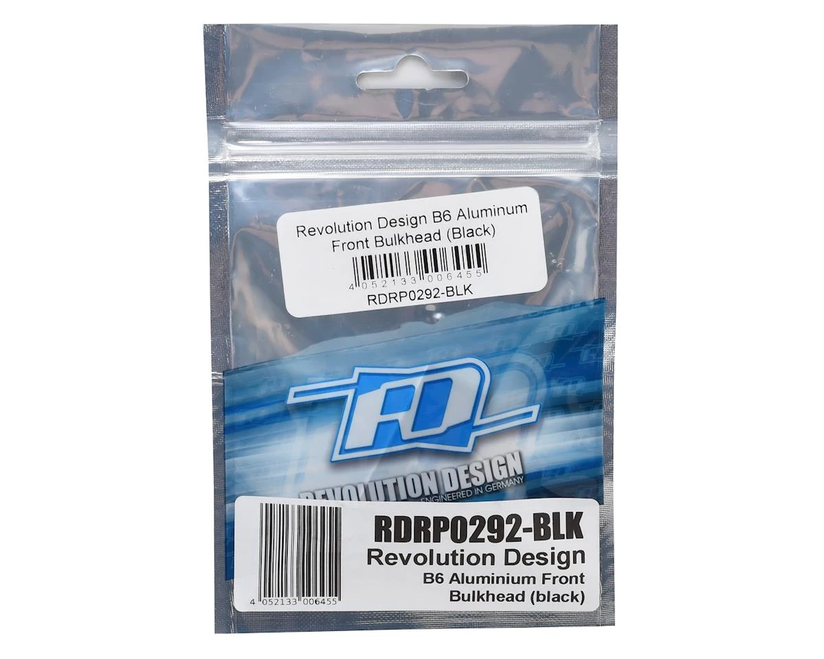 The Revolution Design Racing Products B6 Aluminum Front Bulkhead was designed to replace the standard part with a more sturdy and durable item. The bulkhead comes machined from aircraft-grade 7075-T6 aluminum and its directional design allows to run 25 degree or 30 degree kick-up angle while the anodized surface and silver edge details add visual impact. The aluminum part adds rigidity and precision ideal for racing on high-bite surfaces. The part fits both the B6 and B6D and it is available in black or blue anodizing.