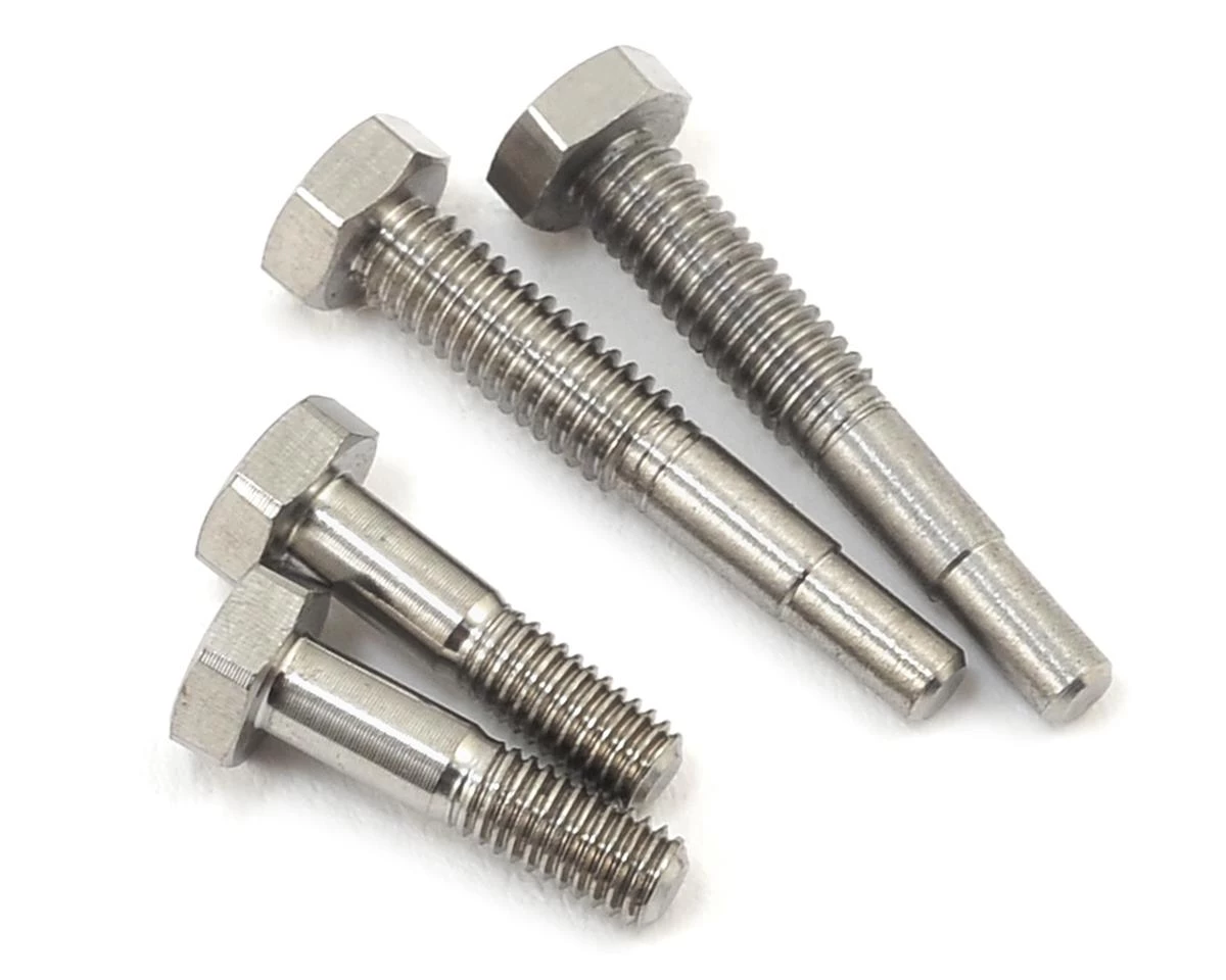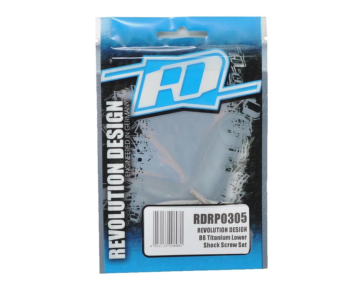 The RDRP B6 Titanium Lower Shock Screw Set includes four clever lower shock mount screws made from high-quality titanium. The fasteners do away with the standard steel screws and they are of a unique design that only has threaded sections where they are needed while areas to which the lower shock eyelet bushings attach are of a plain design for improved durability and precision. The screw heads are also unique in the way that they feature dual 2mm and 5.5mm hex sections that allow to use 2mm hex or 5.5mm nut drivers to fasten or loosen the screws. Package includes two front and two rear shock mounting screws.