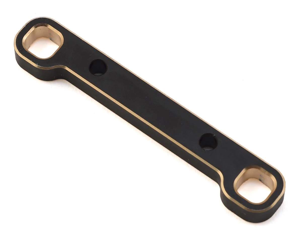 Machined from black-coated brass and sporting gold-color chamfered edges the part weighs in at 15g which shifts the weight bias further to the rear which helps with rotation into corners especially in low traction conditions while improving overall traction at the same time.