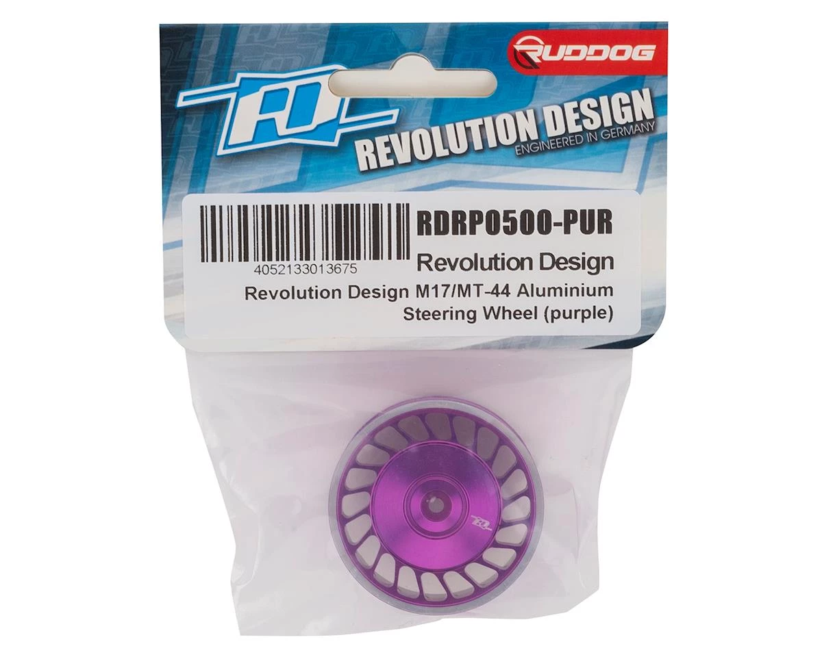 The Revolution Design Racing Products Sanwa M17/MT-44 Aluminum Steering Wheel is a quick and easy way to personalize your transmitter. Machined from high-quality aluminum, the steering wheel features a unique turbine design that greatly enhances the overall appearance of the transmitter while offering improved stability for a more precise steering feel. The steering wheel is available in a variety of colors, while machined silver color edge details and a laser-engraved logo make the wheel stand out. Combine this wheel with the RDRP Sanwa M17 Dial and Nut set (RDRP0501) for the ultimate in custom color combinations!
