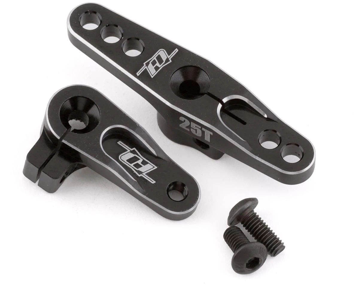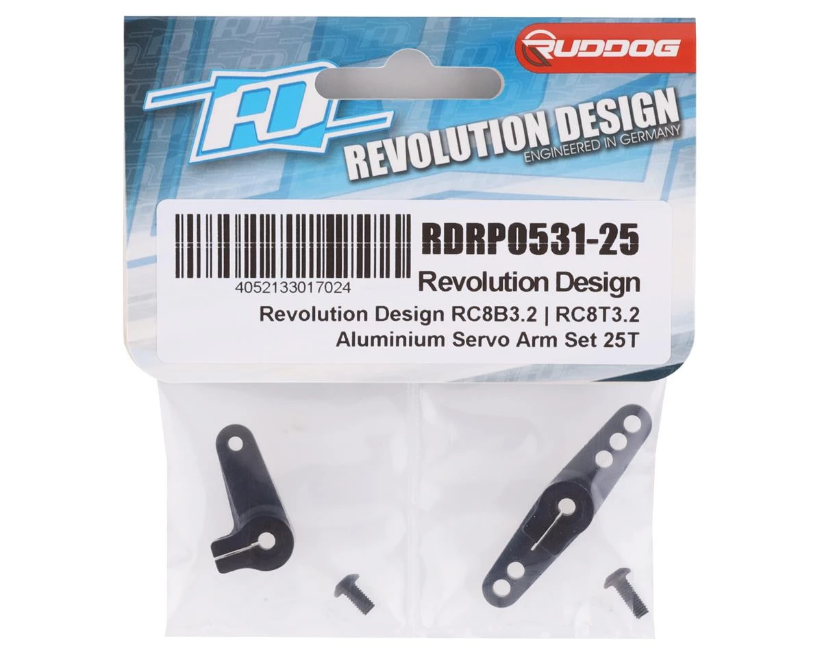 The RDRP RC8B3.2/RC8T3.2 Aluminum Servo Arm Set is a clamping servo horn upgrade that creates a direct and rugged connection between your servos and the steering or carburettor/brake assembly. Specifically made for Team Associated’s third generation RC8 nitro buggies and truggies, the design of the black anodized aluminium servo horns ensures that the clamping screws are easily accessible with the servo installed. With RDRP’s signature logo, the servo horns are a perfect addition to your tricked out Team Associated nitro vehicle.