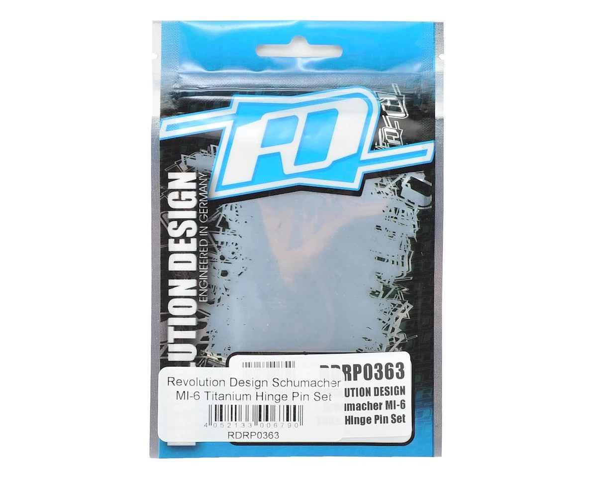 The RDRP MI-6 Titanium Hinge Pin Set includes all eight hinge pins needed to replace the stock parts with high quality titanium upgrades.Â