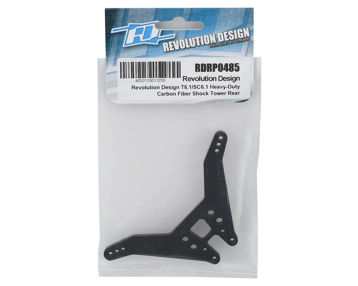 This is an optional Revolution Design T6.1 and SC6.1 Heavy-Duty Carbon Fiber Rear Shock Tower, intended for use with the Team Associated T6.1 and SC6.1 kits.Â