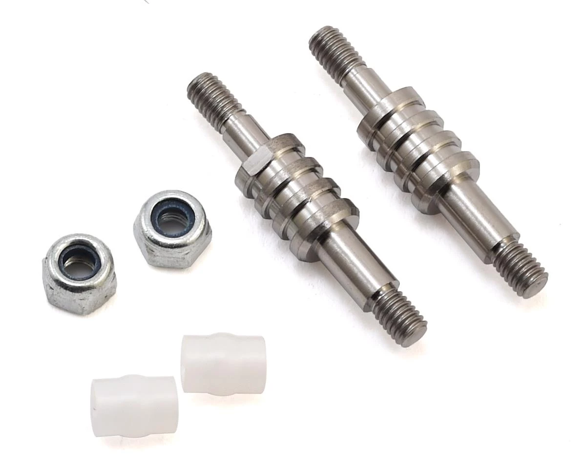 Revolution Design Racing Products’ titanium shock mounts for the Yokomo YZ-2 2WD and YZ-4 SF 4WD buggies are made from high-quality Grade 5 titanium and they are direct replacement for the standard steel shock stand offs. The lightweight material scrubs valuable weight for an overall lower centre of gravity while adding visual impact, thanks to RDRP’s signature “fin” design at the same time. In addition the shock mounts, that are usable both front and rear, include machined delrin bushings for the upper shock caps which makes for improved precision of the whole suspension system. For spares or repair the delrin bushings are also available separately.