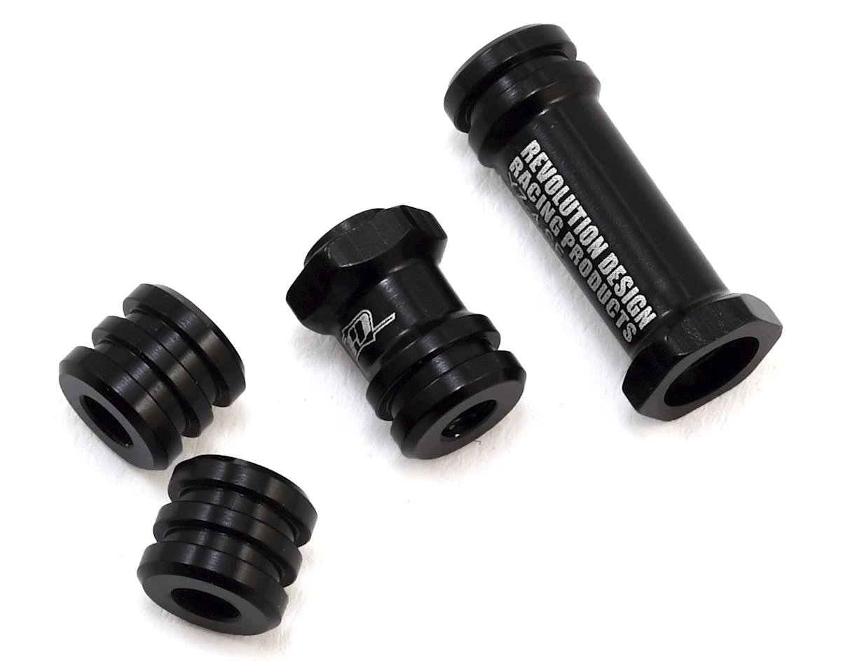 The RDRP YZ-4 SF Aluminium Battery Post Set for Yokomo’s latest 1/10th 4WD buggy is machined from aircraft-grade 7075-T6 aluminum and it sports the RDRP signature cooling fin look. The black anodized and laser-etched front and rear posts are a direct replacement for the standard parts, they work with the kit’s battery mounting hardware or aftermarket parts and they are of a 2-piece design to allow for easy height adjustment for standard or low center of gravity packs.